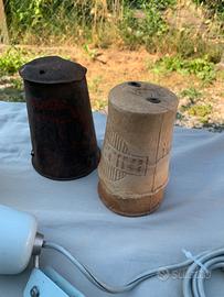 Vecchi cappellotti copritappo in cartone e latta per damigiana.