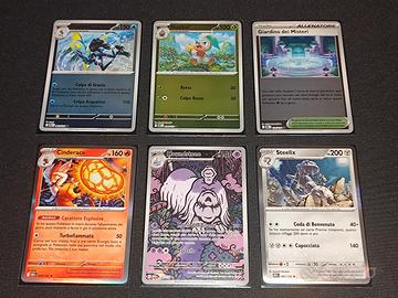 Vendo lotto di circa 25 carte Pokémon originali in italiano, quasi tutte provenienti dal set Destino di Paldea. Condizioni Near Mint (pari al nuovo).