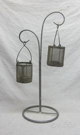 Porta candele doppio in metallo, misura cm. 50 x 18