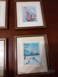 6 quadretti vendo insieme in blocco . Con segni del tempo, trovati in soffitta . Tutti con le stesse dimensioni 20,5x18,5 cm.