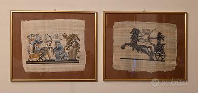 Lotto n.9 pergamene egizie originali e finemente dipinte, già incorniciate. Dimensione cornici 57x47 cm. Anni '80, perfettamente conservate.
