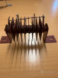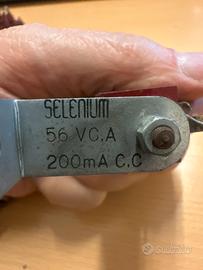 Vendo lotto composto da 6 raddrizzatori al selenio vintage, provenienti da apparecchiature elettroniche anni ’60-’70. Il lotto include diversi modelli e formati, tra cui: •raddrizzatori a lamelle dissipatrici •modelli con supporto in ceramica e metallo •componenti marcati “ZA 1971”, “ZA 9173”, “4460” •un esemplare marcato: “Selenium 56 V C.A – 200 mA C.C” Caratteristiche: •componenti originali d’epoca •tecnologia al selenio (pre-silicio) •ideali per restauro radio, amplificatori e apparecchiature vintage Condizioni: •non testati •presenti segni del tempo e ossidazioni •venduti come da foto Perfetti per: •collezionisti di elettronica vintage •appassionati di restauro •arredamento industriale / decorativo Vendita in blocco. Prezzo 80 trattabili