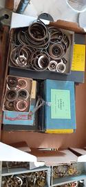 Consistente lotto di pezzi di ricambio per sveglie meccaniche vintage. Ci sono molle( circa 150), spirali, chiavi, bronzino e rotelle varie