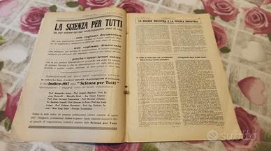 Lotto Svuotacantina di riviste storiche originali del periodo Grande Guerra, in buono stato come da foto: presentano segni del tempo, qualche strappo sulla copertina ma pagine interne ben conservate e complete. Rivista "La Scienza per Tutti", Casa Editrice Sonzogno, anno XXIV n.24, 15 dicembre 1917. Articoli su esplosivi (benzuolo, toluolo), officine Caproni, malattie della guerra, idoneità aviatori e invenzioni. Qualche strappo sulla copertina, ma fascicolo integro e affascinante per collezionisti di divulgazione scientifica d'epoca. Lotto di tre riviste "Il Secolo XX" originali: 1° Maggio 1917, 1° Settembre 1918, 1° Novembre 1918. Nessuna pagina mancante, in discrete condizioni per l'età. Rivista illustrata popolare dell'epoca, perfetta per appassionati di periodici storici e Grande Guerra. Spedizione sempre a carico dell’acquirente tramite i servizi di Subito.it; non effettuo ritiri in zona.