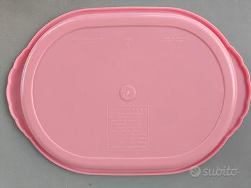 Vassoio rosa confetto, presenta qualche difetto di fabbrica come evidenziato dalle numerose foto, piccola abrasione, qualche riga sulla parte interna che si nota controluce.