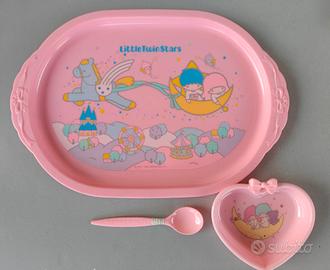 ⭐💗 Lotto Sanrio, 1976, 1984, Little Twin Stars, Vassoio, Piattino Cuore, Vintage in plastica dura.