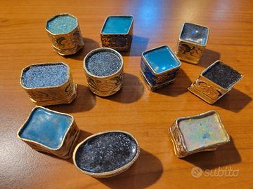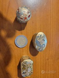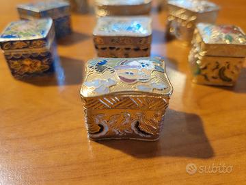 Lotto di scatoline decorative cloisonné vintage in ottone dorato smaltato, stile cinese.