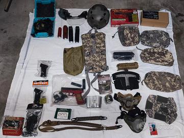 tutto quello che si vede in foto più altre cose che non uso più che inserirò nello scatolone la t33 è nuova mai usata a CO2 la Glock è della cyma