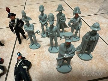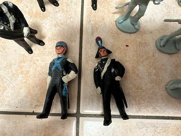 Lotto di 12 soldatini risalenti indicativamente agli anni 60/70 raffiguranti i carabinieri: 7 soldatini in grigio e 5 dipinti a colori, di cui due fanno fatica a reggersi in piedi