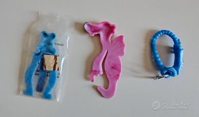 lotto di 3 gadget originali della collezione "Mostri di Bravura", distribuita da Ferrero nel 1998 1 Mostro Righello/Segnalibro azzurro: ancora sigillato nella sua bustina originale, pezzo da collezione raro in queste condizioni. 1 Personaggio snodabile rosa: mostro marino con pinne gialle, in ottime condizioni. 1 Accessorio/Portachiavi azzurro: elemento testurizzato con anello in metallo originale. #Kinder #Ferrero #MostridiBravura #Sorpresine #Vintage1998 #Collezionismo #Anni90 #KinderBrioss