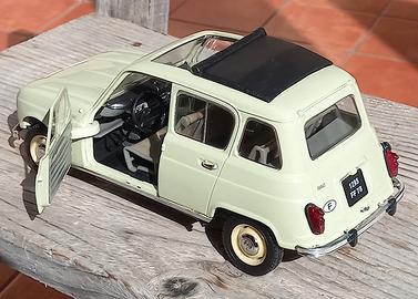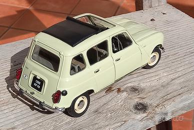 modello anno 1964 Renault 4L in scala 1/18, colore beage, sportelli apribili, cofano motore apribile, modellino perfetto senza confezione,