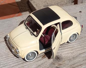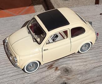 Modello fiat 500 prima serie anni 60 vintage, con sportelli che si aprono controvento, e in scala 1/18, modellino in metallo della SOLIDO di colore beige, vedi foto dettagliate.