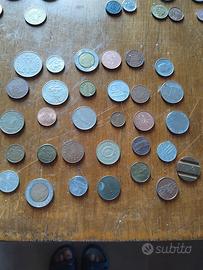 Monete Mondiali e della Repubblica: Grande quantità di monete estere (Francia, Spagna, Jugoslavia, Svizzera, ecc.) e Lire italiane fuori corso (50, 100, 200 e 500 bimetalliche).