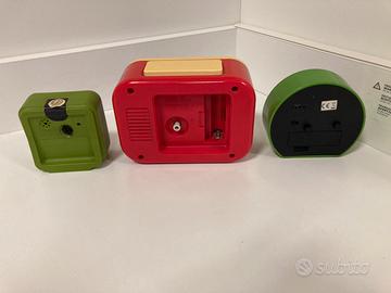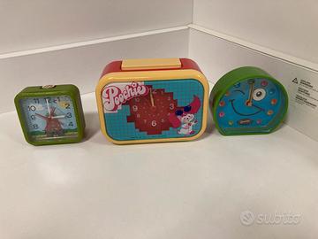 Vendo lotto composto da 3 orologi/sveglie vintage. Sveglia Poochie Mattel 1984 perfettamente funzionante, manca tappo batteria; sveglia Smarties che nonostante abbia ancora le istruzioni attaccate sotto non funziona (da sistemare); sveglia Kundo mulino a vento. Condizioni come da foto. Per info non esitate a contattarmi.