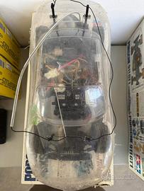 n.1 Porsche Boxster Chassis M-02L , mod. Tamiya 58197 , completa di scocca non verniciata, scatola originale con vernice spray (nuova), kit decal, Radiocomando Acoms Techniplus mod AP-201/40
