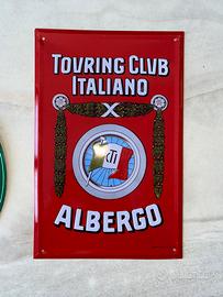 Vendo set di 7 targhe decorative in metallo, riproduzioni moderne di storiche pubblicità italiane.