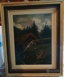 Lotto tre quadri: - olio su tela, Ugo Battaglia, 72x91,5 (tela 50x70); - olio su tela, Delio Di Maggio, 57,5x78 (tela 40x60); - olio su tavola, non firmato, 42x51. In omaggio cornice vecchia 66x81.
