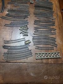 Vendo per inutilizzo ampio lotto di modellismo ferroviario vintage in scala HO, ideale per amatori, collezionisti o per chi vuole iniziare a costruire un plastico d'epoca. Il set comprende una vastissima dotazione di binari e accessori difficili da trovare in queste quantità tutti insieme. IL LOTTO INCLUDE: Locomotive: 1 Motrice a vapore e 1 Automotrice passeggeri (Livrea bianco/blu). Vagoni: 1 Carrozza passeggeri lunga, 1 carro merci e un carro cisterna/piccolo. Tracciato: Enorme quantità di binari dritti e curvi (stimati oltre 50/60 pezzi). Pezzi Speciali: Diversi scambi manuali ed elettrici, ponte a traliccio grigio, serie di pilastri per sopraelevata e pulsantiera di comando. STATO DELL'OGGETTO: Il materiale è originale degli anni '60/'70. Trattandosi di un ritrovamento, viene venduto con formula VISTO E PIACIUTO, NON TESTATO. I componenti presentano i normali segni del tempo e della polvere. Ottima base per un progetto di restauro o per recupero pezzi originali. PREZZO E SPEDIZIONE: Prezzo: €130,00 (leggermente trattabile per chi conclude rapidamente). Vendo solo in blocco, non separo i pezzi.