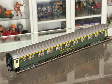 Lotto Treno Trenini Ferrovie SBB CFF FFS Vagoni (Svizzera) Roco x2 + Liliput x2 Roco 44438 – SBB CFF FFS PTT 924 Vagone postale (SCATOLA) ➡️ Epoca IV (circa 1965–1990) Tipo: carro postale EW II / UIC Ferrovia: SBB CFF FFS (Svizzera) Livrea / Dettagli: verde moderna Uso storico: anni 70–80, spesso in treni internazionali con carrozze straniere Roco 45189 (67842) – SBB CFF FFS 050 85 92-33606-1 (SCATOLA) ➡️ Epoca IV (circa 1970–1990) Tipo: carro postale svizzero (SBBCFFFFS) Ferrovia: SBB CFF FFS (Svizzera) Livrea / Dettagli: carro postale UIC con numero reale 050 85 92‑33606‑1 Uso storico: treni passeggeri moderni SBB e internazionali Nota Bene: "Manca un distanziatore" Liliput 87750 – Carrozza 1ª classe SBB‑CFF‑FFS, verde (H0) ➡️ Epoca IV (circa 1970–1990) Tipo: carrozza passeggeri 1ª classe, Leichtstahlwagen (leggero) Ferrovia: SBB‑CFF‑FFS (Svizzera) Livrea / Dettagli: verde con tetto grigio, numero reale 508518‑33020‑6 Uso storico: treni passeggeri SBB in servizio negli anni ’70–’80 (InterCity, Espressi, regionali) Nota Bene: Manca maniglia porta e un tubo su fronte treno. Liliput 88150 – Carrozza 1ª classe SBBCFFFFS (H0) ➡️ Epoca IV (circa 1970–1990) Tipo: carrozza passeggeri 1ª classe Ferrovia: SBB‑CFF‑FFS (Svizzera) Livrea / Dettagli: verde (tipica delle carrozze SBB passeggeri di epoca moderna), numero reale 518519‑80024‑8 Uso storico: treni passeggeri svizzeri anni ’70–’80, utilizzata nei convogli espressi e regionali e spesso venduta come auto “SBB first class coach” nei mercatini online LEGGERE ATTENTAMENTE: Modello di treno in scala da collezione. Articolo usato. Condizioni buone in rapporto all’età, con possibili lievi segni del tempo o dell’utilizzo. La scatola originale, se presente, può essere usurata, incompleta o mancante. Si consiglia di visionare attentamente le foto, parte integrante della descrizione. Vendita come oggetto usato da collezione.