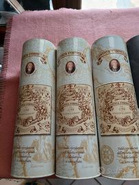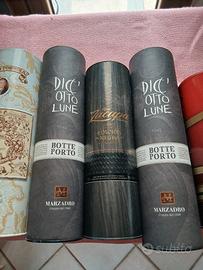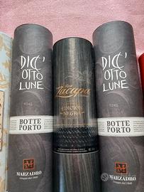 Vendo splendido lotto di contenitori vuoti originali di liquori e distillati di alta gamma, ideali per collezionismo, esposizione in vetrina, arredamento di locali/home bar o progetti di upcycling (creazione di lampade, portapenne di design, ecc.). Il lotto comprende 8pezzi in ottime condizioni: 3 Latte Antica Formula Carpano: Le iconiche confezioni cilindriche del celebre vermouth torinese, con grafica storica ricercata. 1 Tubo Ron Zacapa Edición Negra: Elegante confezione nera testurizzata del famoso rum guatemalteco. 2Tubo Grappa Marzadro "Diciotto Lune" Riserva Botte Porto: Design moderno e minimale per una delle grappe più premiate. 1 Latta Baileys Original Irish Cream: Edizione speciale rossa con fiocco dorato, perfetta per decorazioni natalizie o vintage. 1 Tubo Kar Ares - Roverè della Luna: Confezione scura molto elegante di un pregiato vino/distillato trentino. Tutti i contenitori sono puliti e conservati con cura. home bar decor ,industrial design,collezionismo liquori