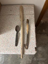 •utensili manuali antichi in legno da cucina o uso agricolo