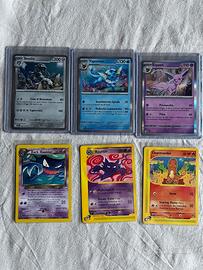 Pikachu , Pikachu Volo V , Pikachu surf V , Charizard lucente , Venusaur Lucente , Charizard V max , Charizard V astro , Poliwhirl 151 , Mew ex 25 anniversario , Mega Kangaskhan ex megaevoluzioni , Poffin del cuore , Hunter , Dark Hunter , Charmander , Steelix , Vaporeon , Espeon