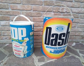 come da titolo si propongono 3 vecchi fustini bucato detersivo lavatrice pubblicitari vuoti di tre marchi differenti