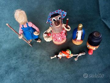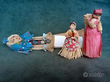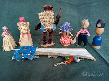 Gestione autonoma di vendita e spedizione: 3493422085. Spedizione pacco Poste Italiane 10 euro. Blocco Stock pupazzi e bamboline di tela, stoffa, foglie cartoccio di mais (scartozzo, corn dolls), uomo di pigna corda legno, folletto essere del bosco, pupazzo salino scomponibile in sale e pepe, piccolo arrampicatore in gomma. L'uomo grande con la gerla è alto circa 20 cm. Vintage anni 70 – 90 circa. Artigianato tradizionale montano, di montagna, Alpi, fatto a mano. Provenienza Trentino Alto-Adige, Austria o Germania, tedesco (Echte Sarntaler Handarbett - beit), eccetera. Valuto scambio con monete antiche, carte Magic the Gathering (Mtg), vinili dischi da 33 giri (lp), Toncc