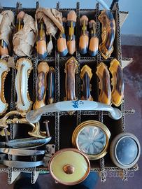 n.38 vecchie maniglie anni 50-60 per armadi e comò ben conservate .14 maniglie uguali. più altre4 uguali più 3 coppie da 2 uguali più 14singole.vendita solo insieme prezzo di tutte insieme complete di viti e dadi un po' arrugginiti ma non si vedono.(vedi foto 5)
