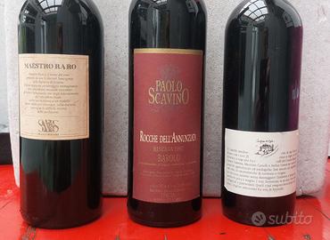 Tre bottiglie dagli anni '90 conservate perfettamente. - La star del lotto, Barolo riserva Rocche dell'Annunziata di Paolo Scavino 1997 - Berardenga - Maestro Raro 1991 (Cabernet Sauvignon - enologo Franco Bernabei) - Castello di San Polo - Cetinaia 1990 (annata top, Sangiovese 100%) Personalmente le ho assaggiate tutte ed erano in ottima forma. I vini degli anni '90 durano infinitamente, non come quelli di oggi...Le bottiglie sono in ottima stato, capsule ok, livelli perfetti, le etichette le vedete in foto. Ovviamente sono state conservate per tutti questi anni in cantina interrata. Vendo solo per bere altro. Non svendo, non fate offerte assurde (mal che vada me le bevo...). Per questo prezzo forse comprate il Barolo. Spedisco in imballaggio apposito. Guardate i miei feedback! Per ricerca Sassicaia Solaia Tignanello Cervaro della Sala Trebbiano d’Abruzzo Valentini Chablis Gran Cru Dauvissat Raveneau Marchesi di Barolo Gaja Scavino Mascarello Giacosa Rinaldi Brunello Argiano Soldera Biondi Santi Poggio di Sotto Casanova di Neri Flaccianello Turriga Pergole Torte Masseto Ornellaia Amarone Bertani Quintatelli Dal Forno bottiglie vintage collezione cantina Champagne Dom Perignon Cristal Krug Selosse Salon Giulio Ferrari Riserva del Fondatore Lunelli Miani Vino