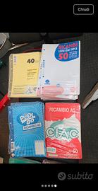 Contenuto: Rigature miste (quadretti e righe) e alcuni pacchetti di carta colorata (es. rosa).