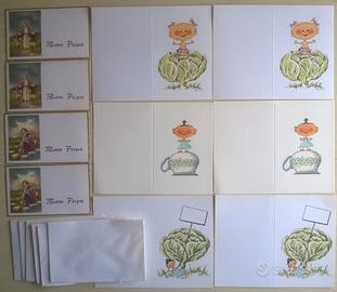 6 bigliettini (3 tipi per 2) di Auguri 11,8 x 7,5 cm ca. con 6 buste 12,2 x 7,8 cm ca.