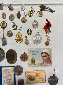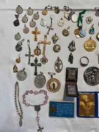 Vendesi affascinante collezione assortita di oggetti devozionali e religiosi vintage. Il lotto è composto da oltre 60 pezzi di varie epoche, materiali e dimensioni, ideale per collezionisti, mercatini dell'usato o per chi cerca pezzi unici per creazioni artigianali. Il lotto include: Medagliette Votive: Ampia varietà di soggetti (Madonna, vari Santi, Papi e luoghi di culto come Lourdes e Fatima). Crocifissi e Croci: Diversi modelli, da quelli pendenti a pezzi più strutturati in metallo e legno. Rosari: Presenti modelli classici, tra cui uno con grani sfaccettati color rosa. Immagini Sacre e Pendenti: Piccole icone protette e medaglioni di grandi dimensioni finemente lavorati. Materiali: Mix di metallo argentato, dorato, bronzo e potenziali pezzi in argento (da verificare). Condizioni: Gli oggetti sono in condizioni vintage originali. Molti presentano una bellissima patina del tempo che ne autentica l’epoca.