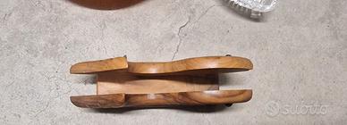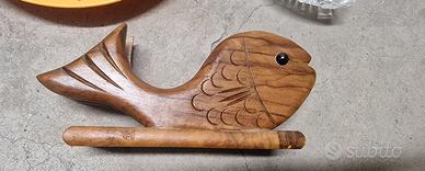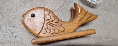 Piatto vintage per bambini in plastica rigida arancione, con bordo decorato da pesci, chiocciole e altri animaletti colorati in stile anni ’80/’90, con normali segni d’uso ma ancora ben utilizzabile. Centrotavola antico in vetro/“cristallo” pressato, forma ovale allungata con lavorazione a raggi e coste, adatto come fruttiera, svuotatasche o vassoio decorativo. Porta tovaglioli in legno massello a forma di pesce. Oggetti originali e d’epoca, non moderni, con fascino vintage e piccoli segni del tempo che ne testimoniano l’età ma senza rotture. Vendo solo in blocco.