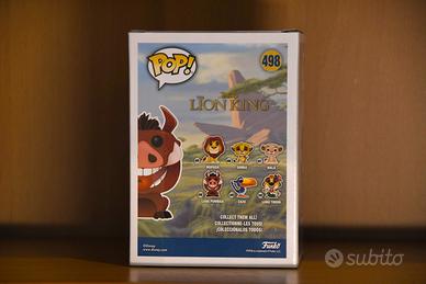 Funko Pop "Luau Pumba" del Re Leone in buona condizione da collezione. La plastica della confezione presenta un piccolo difetto (visibile nelle foto poco sopra il muso) mentre il modellino è in perfette condizioni.