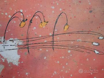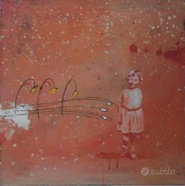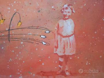 LUCA GIOVAGNOLI grande serigrafia materica originale "Bambina con fiori" in ottime condizioni.
