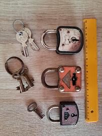 Gruppo di n. 3 lucchetti vintage funzionanti. Due della ditta ABUS Germania. L'altro della ditta Henry Squire Inghilterra. Euro 35,00.