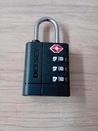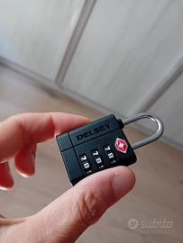 Lucchetto nuovo mai utilizzato marca Delsey Paris,logo su entrambi i lati.Modello a combinazione (ancora con combinazione fabbricazione) con istruzioni.