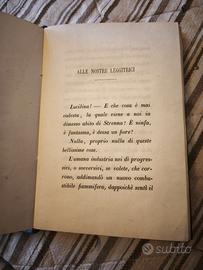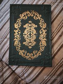 Raro libro antico Lucilina Strenna con copertina rigida in similpelle verde scuro e decorazioni floreali dorate in rilievo.