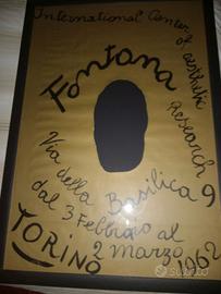 Raro manifesto originale d epoca della mostra di Lucio Fontana tenutasi nel 1962 originato dall International Center of Aesthetic Research - ICAR - fondato da Michel Tapié de Céleyran, critico d'arte francese. Ha organizzato importanti mostre nonche' teorico di fama internazionale. È stato uno dei promotori principali dell'«arte informale». Grande interprete dei linguaggi dell arte del suo periodo, ancora oggi attuali.