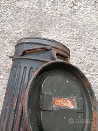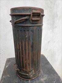 Contenitore per maschera antigas tedesca ww2 della seconda guerra mondiale. Colorazione blu luftwaffe. Ulteriori foto senza impegno.