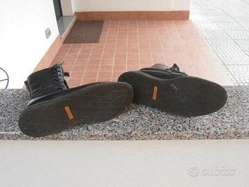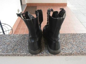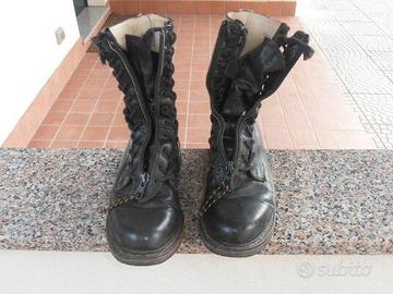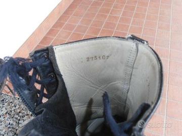 originali ex ordinanza aeronautica tedesca scarponcini da volo per personale navigante preferito anche dai reparti paracadutisti in morbida pelle pieno fiore di colore nero con chiusura frontale ad apertura rapida a cerniera e regolazione laterale a lacci suole vibram leggermente usati ma in ottime condizioni in taglia quarantuno circa