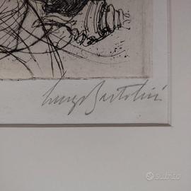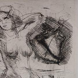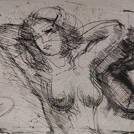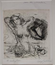 Bellissima incisione del Maestro Luigi Bartolini eseguita nel 1941( su lastra). L' acquaforte, raffigurante una donna in mezzo al mare con una conchiglia in alto a destra ed un'altra in basso a destra, dalla quale spuntano due amanti, è da definirsi una copia unica, stampata come prova "non da vendere", è scritto in alto al centro del foglio da Luigi Bartolini. Carta Cina applicata su fondino. Cornice artigianale in argento vero. Vetro museale.