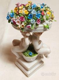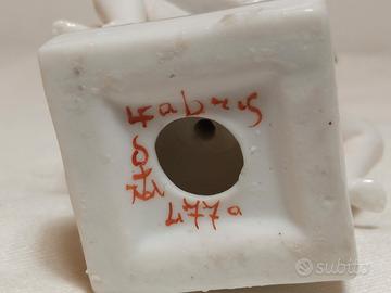 Luigi Fabris (1883-1952) piccola scultura in porcellana di straordinaria bellezza, pezzo principale centrale (catalogato al N° 477) di una composizione, andata smarrita, di un giardino miniaturizzato pure in porcellana. In ottime condizioni. Dimensioni: base cm 3,5 x cm 3,5 - larghezza massima cm 6 - altezza cm 10. L. Fabris fu un raro e raffinato modellatore che iniziò l'attività presso la Ceramica Passarin di Bassano del Grappa che successivamente acquistò e che cedette nel 1917 per trasferirsi a Milano dove aprì una nuova fabbrica di porcellane grazie alla quale ottenne in breve tempo un ampio successo internazionale e che il figlio Augusto cedette nel 1979 alla società Elite. I suoi lavori sono marcati con un Ancora di colore rosso simile a quella utilizzata nel settecento dalla manifattura veneziana di Geminiano Cozzi.