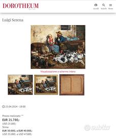 Luigi Serena ha mantenuto il suo valore nel tempo ed ora si ritiene possa incrementarlo di un 8/10 per cento all’anno. Si tratta di un buon investimento oltre ad essere un ritratto pieno di vitalità e carattere. La cornice d’epoca è fatta a mano ed é inclusa nel prezzo.