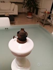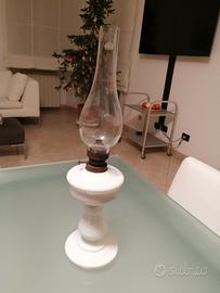 Antico Lume a petrolio in vetro opalino bianco completo del tubo in vetro trasparente originale. Epoca fine 1800,altezza totale cm. 42,condizioni perfette. Il colore bianco e la semplicità della forma lo rendono un oggetto molto piacevole.