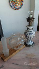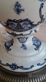 Lume inglese in porcellana e cristallo simile al tipo a petrolio realizzato. dalla fabbrica in tipo elettrico del primo novecento.