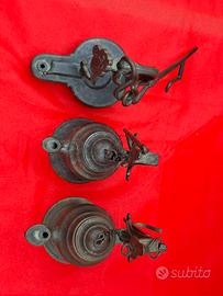 Lumini antichi ( 1 indiano) ad olio in bronzo Prezzo per tutti e tre 100euro Vendibili anche singolarmente a 40euro l'uno