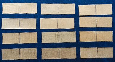 12 francobolli • Dent.13¼ pettine • Filigrana corona • Stampa: tipografia • Stampato da: Officina carte valori Torino • Fogli da: 100 • Dim.: 48 × 15 (mm) • Val. 31 dicembre 1948