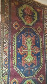 ... comunque il tappeto e' restaurato in epoca remota, si vede il cambio di lana ma al rovescio e' come un cappio al collo.. manifattura d' altri tempi.." non canta, tramaordito non cotta"..
